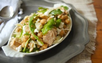 We’re giving tuna a Mediterranean makeover in this hearty, whole grain salad. Farro, chickpeas, fennel and arugula get tossed together with protein-rich tuna and a bright splash of lemon. Crumble feta on top for a tasty finish. Serve it as a light weekday supper or take it to go, since it’s perfectly portable for work or school lunch. If you don’t have any farro on hand, you can easily sub in a different whole grain—such as brown rice, barley or Israeli couscous. You’ll need about 1-1½ cups of cooked grains in place of the farro.